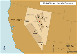 The Utah Clipper Property is located directly adjacent to Barrick Gold's multi-million ounce Pipeline-Gold Acres gold mine complex, in the Cortez-Pipeline sector of the Battle Mountain Gold Trend, Nevada. The Cortez-Pipeline sector has past production plus reserves totaling more than 26 million ounces of gold.
